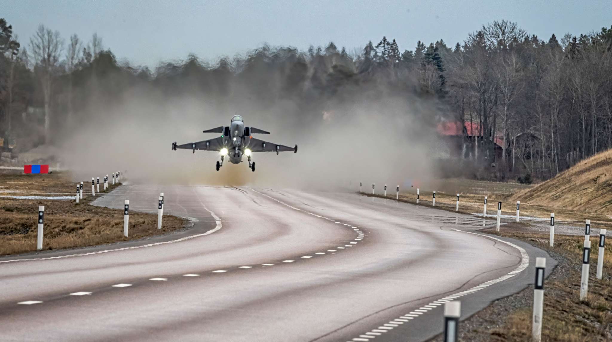 Fig.7 -A Swedish Gripen fighter jet practices taking off on a civilian highway near Gothenburg, Sweden, on May 21 [© NATO Multimedia]